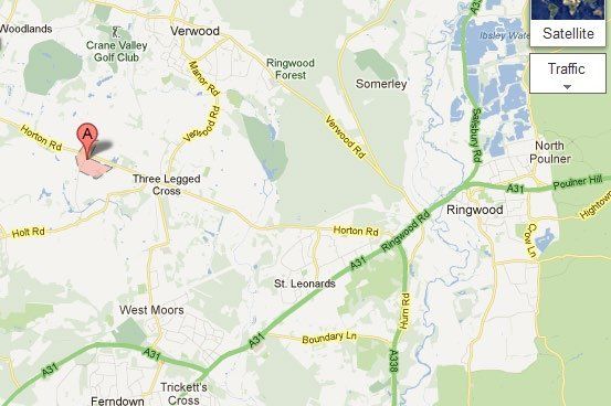 4. Follow this road for about 5 miles, past Moors Valley Country Park on your right; through Three Legged Cross (pub of that name on your left) and past Hilliers garden centre, also on your left.